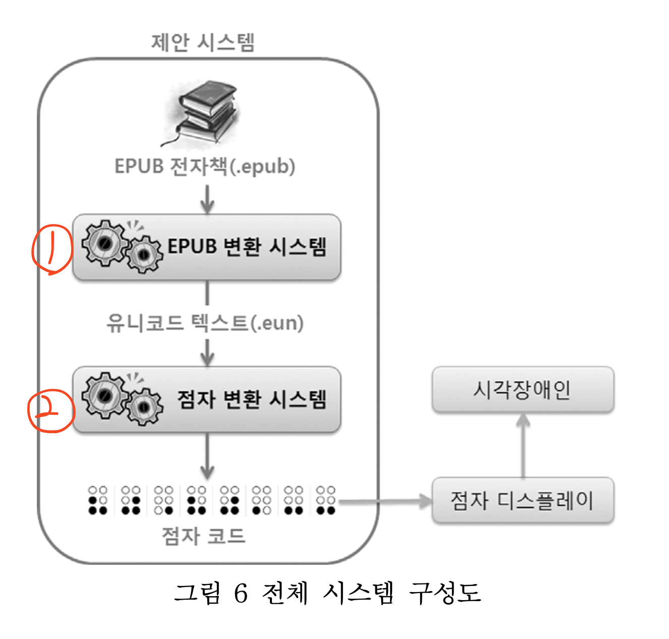 해당 논문은 전자책 표준인 EPUB 규격으로 작성된 전자책을 이용하여 시각장애인용 점자전자책으로 변환하는 기법을 설계하고 구현하였다.
