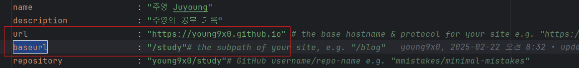 - Jekyll Liquid 언어를 사용해 _config.yml에 깃헙 url 관련 변수를 선언